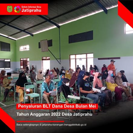 Pelaksanaan penyaluran BLT- DD dilaksanakan Jumat 20 Mei 2022 bertempat di Balai Desa Jatiprahu, dimulai pukul 09.00 Pagi dengan dihadiri Pendamping Kecamatan, Pendamping Desa, Babinsa, BKTM, Kepala Desa dan Perangkat Desa.