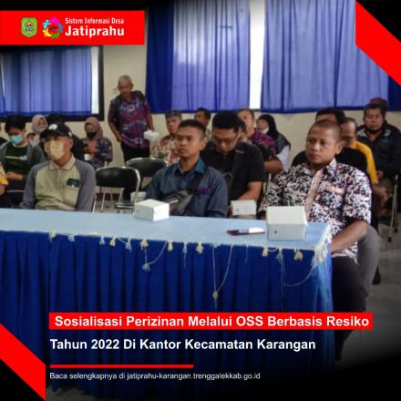 Jatiprahu, (SID JATIPRAHU) – Sosialisasi Perizinan Melalui OSS Berbasis Resiko berlangsung pada hari Kamis tanggal 30 Juni 2022 bertempat di Kantor Kecamatan Karangan. Adapun tujuan dari kegiatan sosialisasi ini adalah untuk meningkatkan pemahaman aparatur Pemerintah Daerah dan Pelaku Usaha tentang system OSS Perizinan Berusaha Berbasis Resiko pasca disahkannya Undang – Undang Cipta Kerja