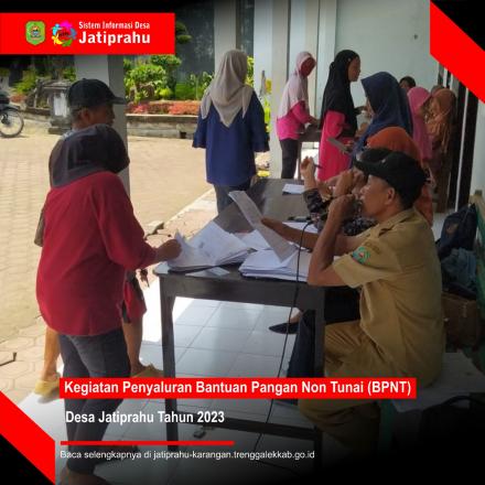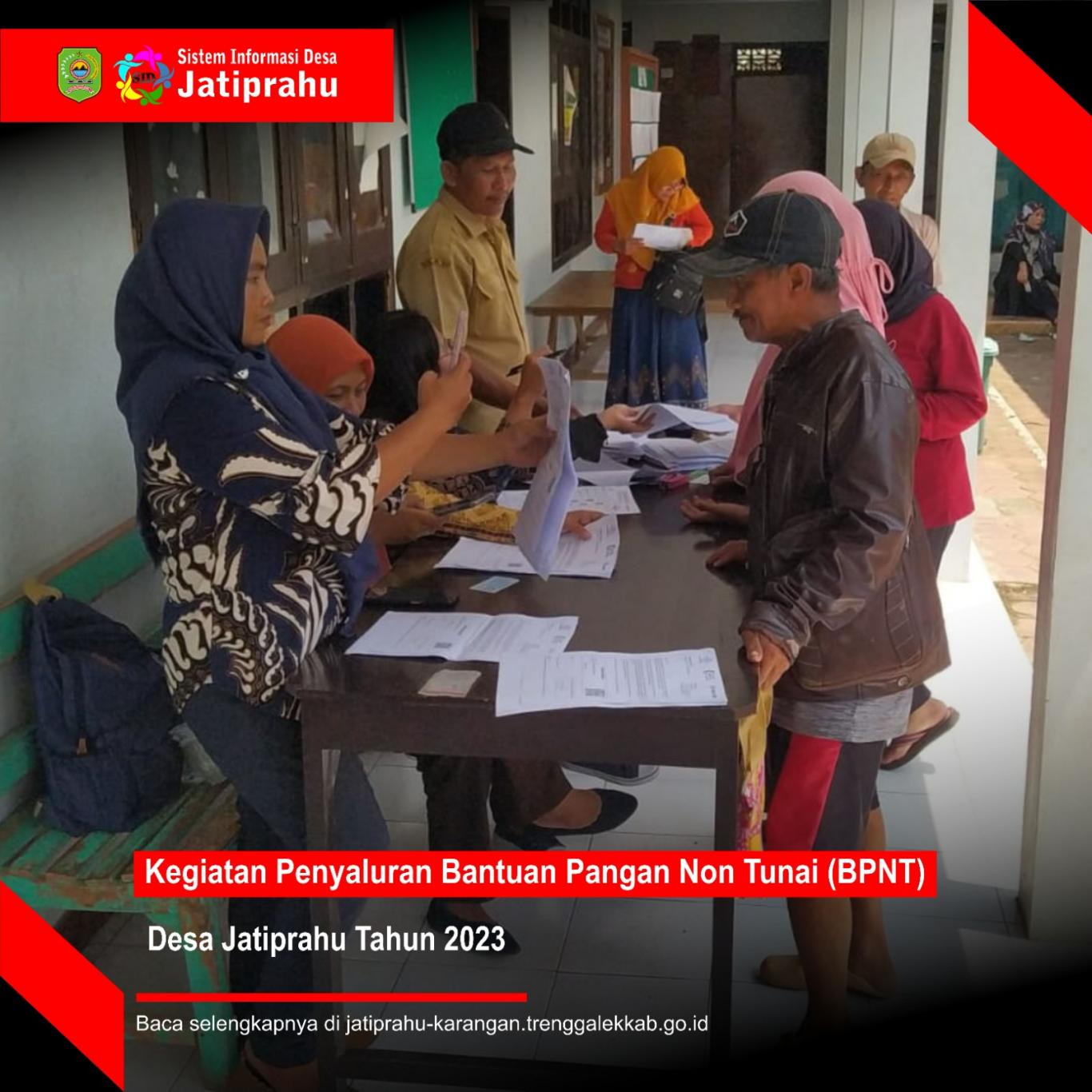 Jatiprahu, (SID JATIPRAHU) – Bantuan Pangan Non Tunai (BPNT) sebagai bantuan sosial terdampak COVID 19 salah satu program dari Kemensos didistribusikan di Desa Jatiprahu Kecamatan Karangan Kabupaten Trenggalek, penyampaian dilakukan di Balai Desa Jatiprahu, Selasa 18 April 2023 dengan dihadiri Petugas POS ( selaku penyalur), dan Pihak desa (selaku Lokasi Sasaran).