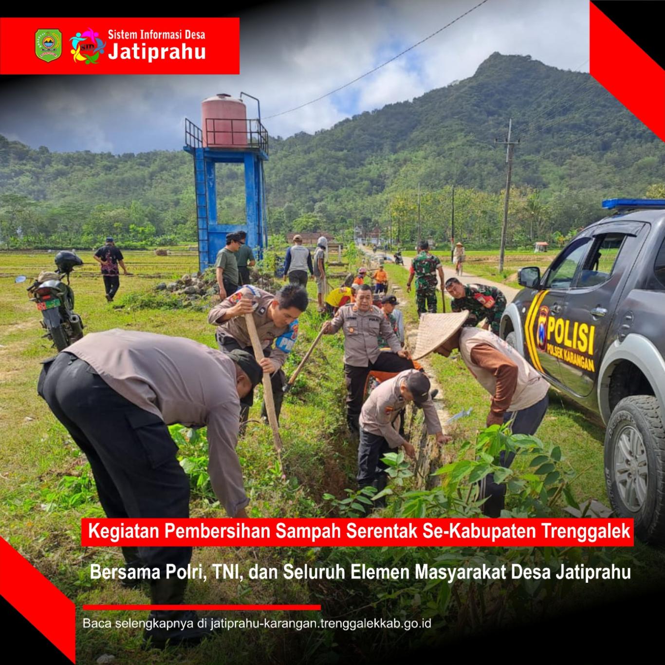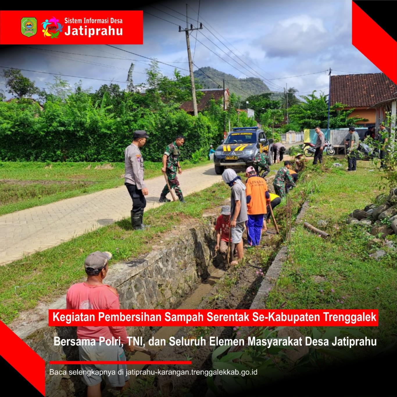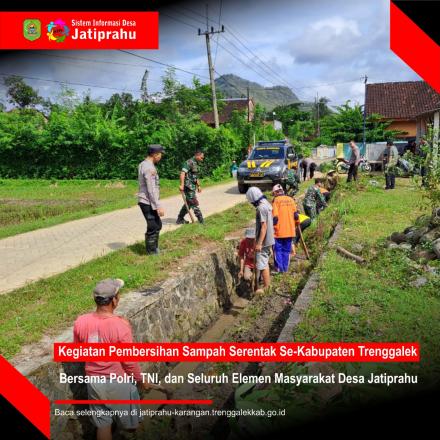 Tak sebatas kata-kata, tetapi dengan melakukan aksi nyata. Pemerintah Desa dan masyarakat Desa Jatiprahu di dampingi polisi turun tangan secara langsung membersihkan sampah di wilayah Desa Jatiprahu.