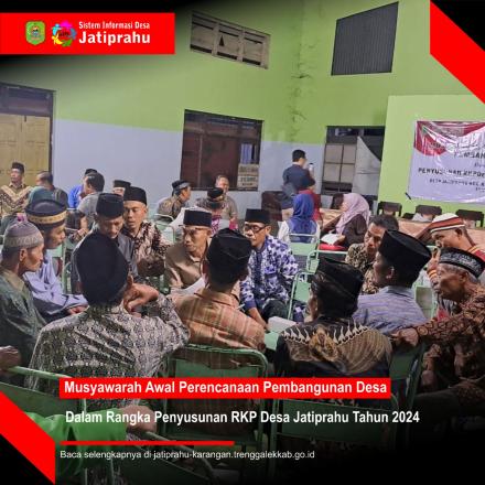 Musyawarah Desa yang dipandu ketua BPD Desa Jatiprahu dan dibantu oleh Bapak Kepala Desa Jatiprahu didalam rapat mendapat berbagai usulan dari Ketua RT dan RW di Dusun Krajan dan Dusun Ngegong tentang pembangunan desa seperti Rabat jalan, Paving jalan, Drainase, Bronjong apus, dan TPJ.