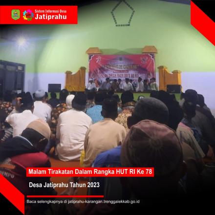Jatiprahu, (SID JATIPRAHU) – Dalam rangka memperingati hari Kemerdekaan Republik Indonesia yang ke 78, Desa Jatiprahu melaksanakan Semaan di Lima tempat kemudian ditutup dengan malam tirakatan. pada hari Rabu tanggal 16 Agustus 2023 di Gedung Serbaguna Desa Jatiprahu.