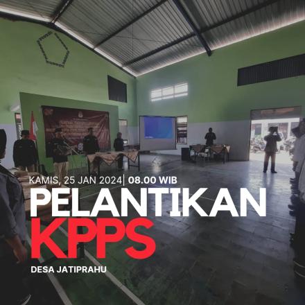 Dengan dilantiknya KPPS Pemilu 2024 sebagai tanda bahwa Pemilu semakin dekat. KPSP di Sumpah Oleh Ketua PPS Desa Jatiprahu, Sugeng Riyanto. “Semoga dengan di sumpah dan janji para KPPS semakin menambah kredibilitas anggota dan mewujdukan Pemilu yang berasaskan LUBERJURDIL” Jelas Sugeng. KPPS yang dilantik sesuai dengan jumlah yang dibutuhkan 16 TPS, dan semua bisa hadir dalam pelantikan tersebut. (Sinta Hardianti)