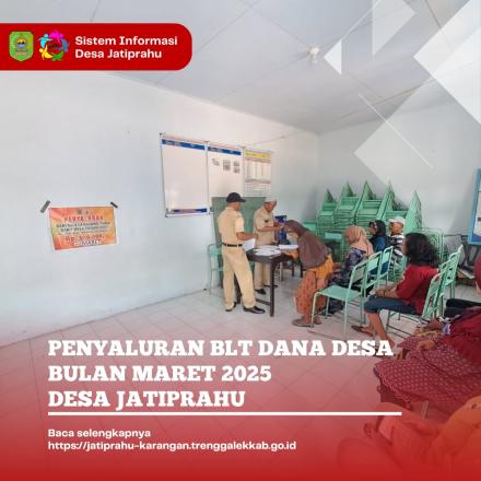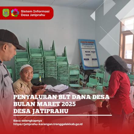 Pelaksanaan penyaluran BLT- DD dilaksanakan Senin, 24 Maret 2025 bertempat di Balai Desa Jatiprahu, dimulai pukul 09.00 Pagi dengan dihadiri Pendamping Kecamatan, Pendamping Desa, Babinsa, BKTM, Kepala Desa dan Perangkat Desa.