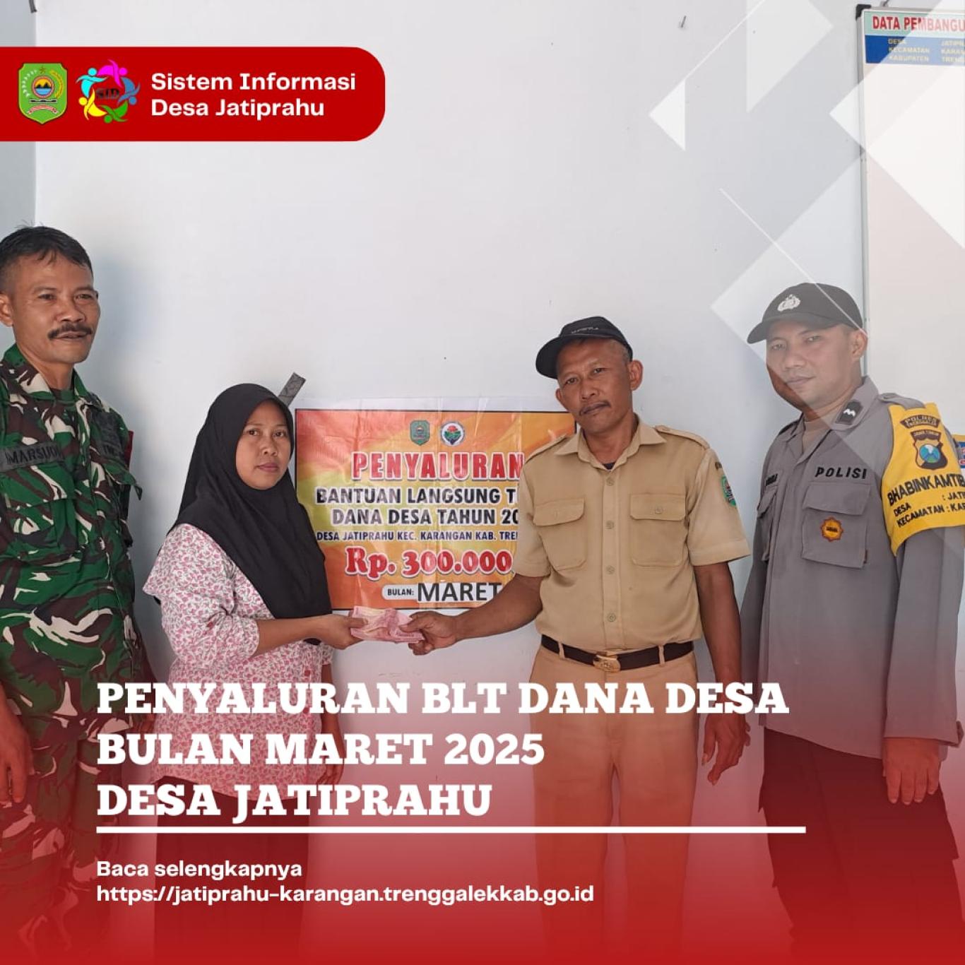 Bantuan dana desa sebesar Rp 300 ribu yang diterima 25 Keluarga Penerima Manfaat (KPM) bisa dimanfaatkan penerima. Tahun ini ada pengurangan KPM dikarenakan mengikuti aturan pemerintah tentang tata cara penggunaan DANA DESA 2025.  Sasaran penerima BLT ditentukan dengan Musyawarah Desa Khusus yang dihadiri oleh ketua RT. Tujuannya untuk memberikan kesejahteraan bagi masyarakat Desa Jatiprahu yang benar-benar membutuhkan" Ujar Daseri, selaku Kesra Desa Jatiprahu. (Sinta Hardianti)