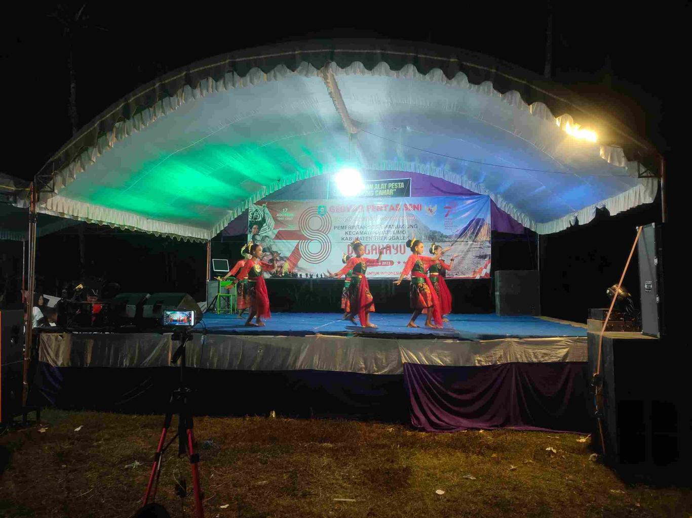 Pada kemarin hari senin tanggal 4 September 2023 sekira pukul 19.30 wib telah dilaksanakan Gebyar Pentas Seni hari yang Kedua tahun 2023 dalam rangka memperingati Kemerdekaan Republik Indonesia ke-78 yang dilaksanakan oleh Pemerintah Desa Watuagung Kecamatan Watulimo Kabupaten Trenggalek. Adapun kegiatan ini disemarakkan dengan Penampilan Pentas Seni dari SD Negeri 4 Watuagung dan TK PGRI Watuagung dalam Pentas seni tersebut ditampilkan berbagai bentuk tarian tradisional, tari kreasi, lagu daerah, lagu keagamaan, lagu kebangsaan, puisi dan kreasi lainnya.