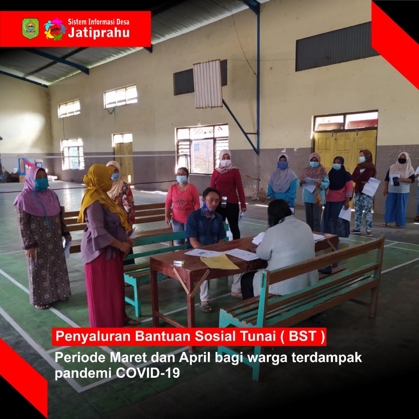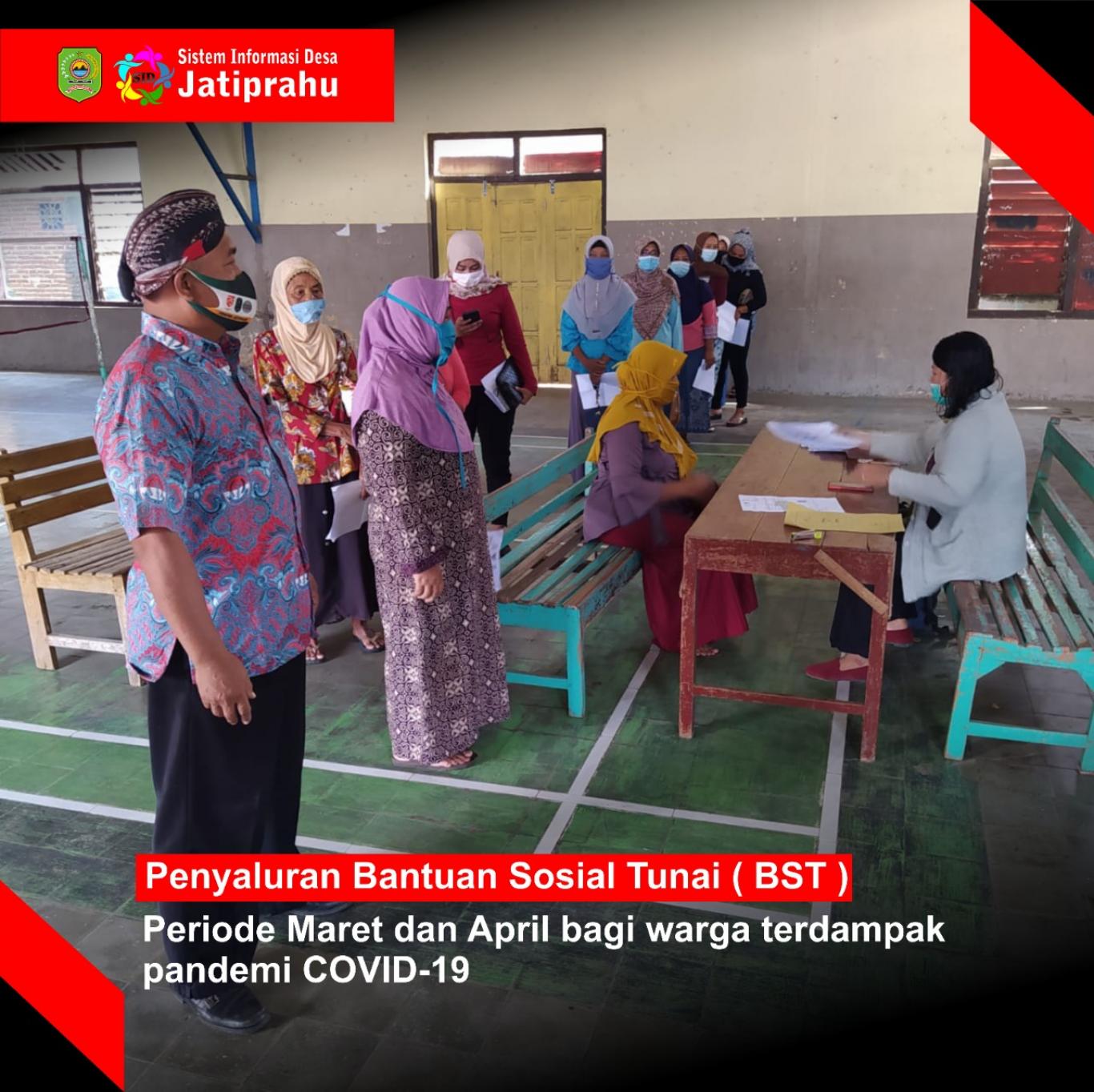 Pelaksanaan penyaluran BST dilaksanakan pada Kamis 15 April 2021 bertempat di Balai Desa Jatiprahu, dimulai pukul 08.00 Pagi dengan mematuhi protokol kesehatan guna pencegahan penularan dan penyebaran COVID-19, penerima BST diwajibkan untuk memakai masker dan tetap menjaga jarak.