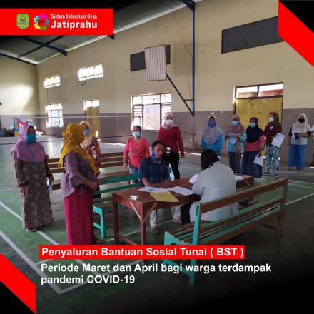 Pelaksanaan penyaluran BST dilaksanakan pada Kamis 15 April 2021 bertempat di Balai Desa Jatiprahu, dimulai pukul 08.00 Pagi dengan mematuhi protokol kesehatan guna pencegahan penularan dan penyebaran COVID-19, penerima BST diwajibkan untuk memakai masker dan tetap menjaga jarak.